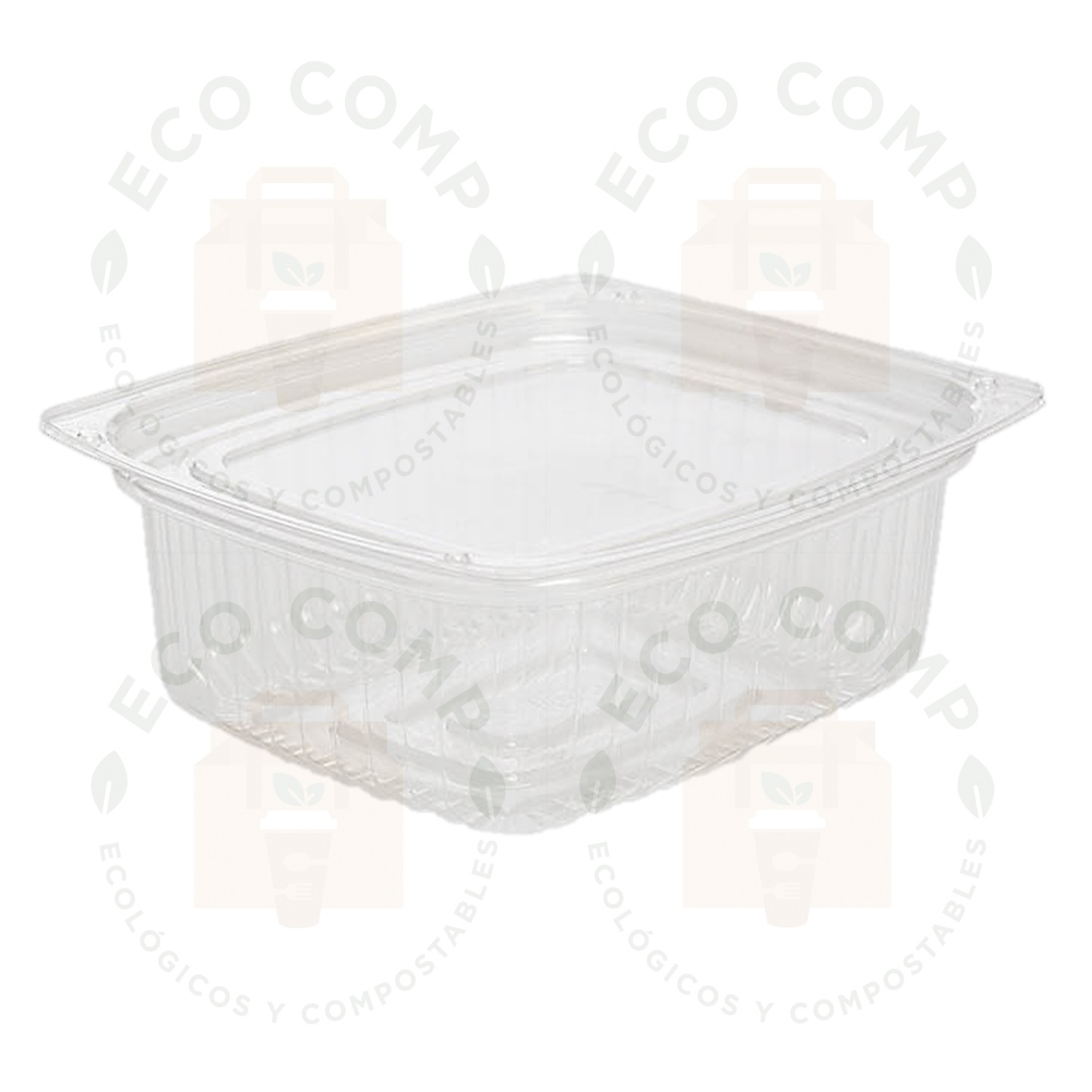 - Contenedor de plástico transparente, biodegradable.